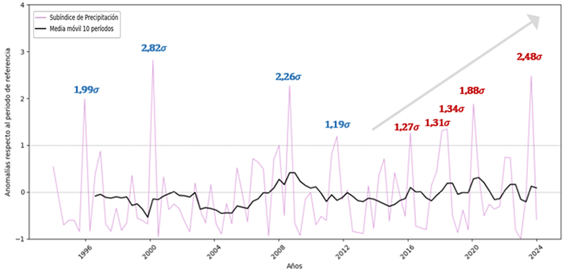 Eventos extremos de precipitación en zona DANA septiembre-noviembre (últimos 30 años)